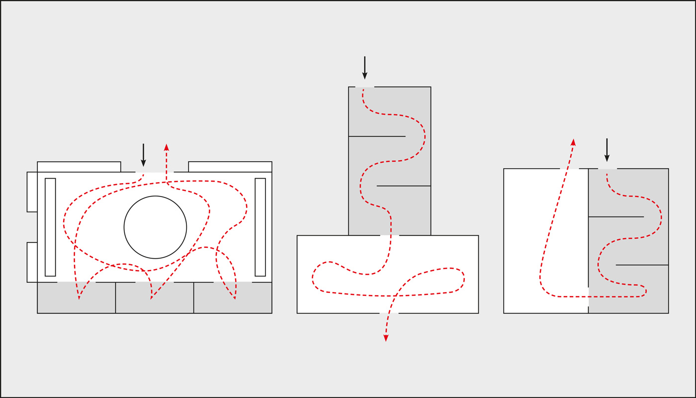 Entwicklungsstufen unseres Grundrisses zu einer optimierten und selbsterklärenden Führung durch unser Raumkonzept