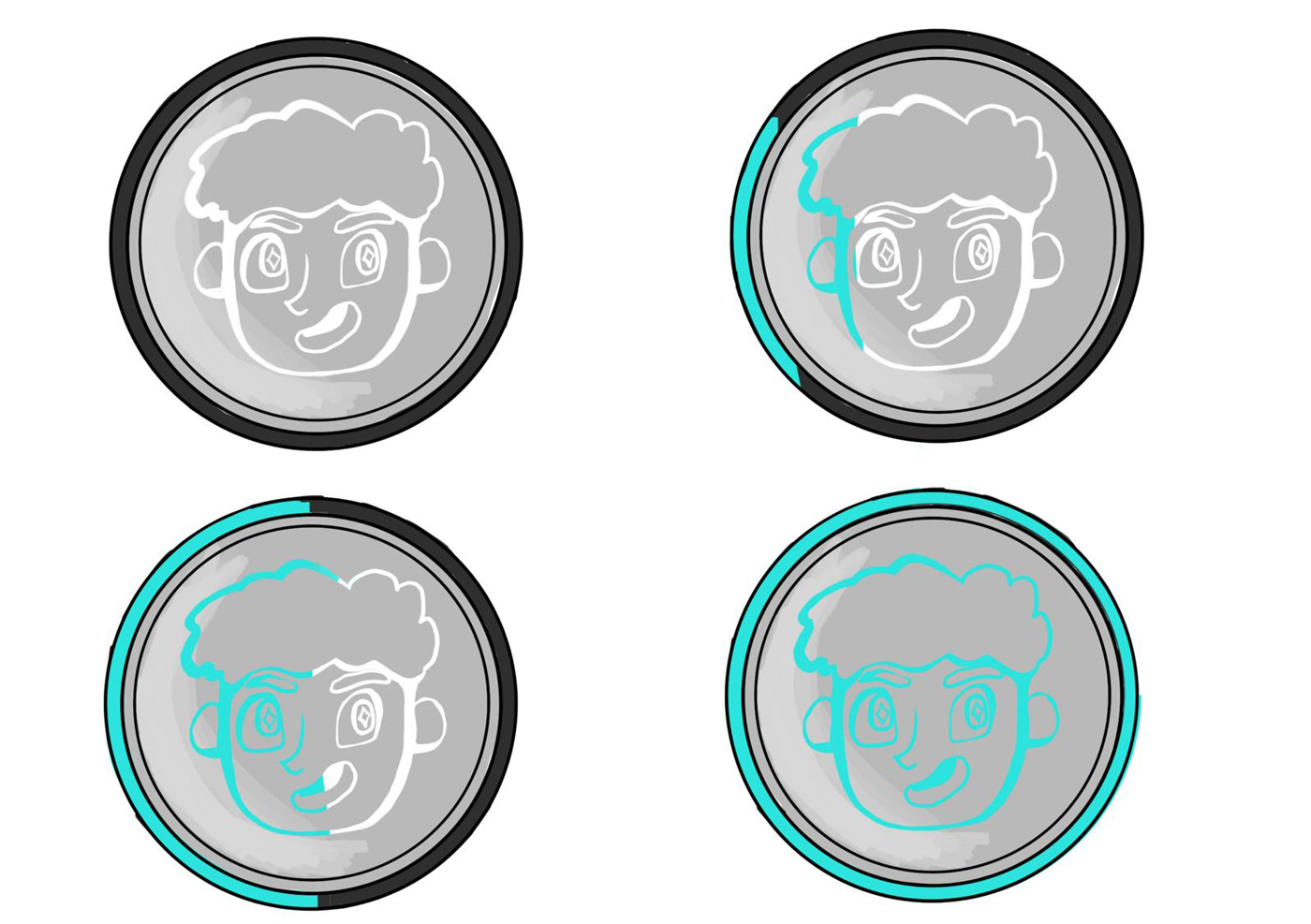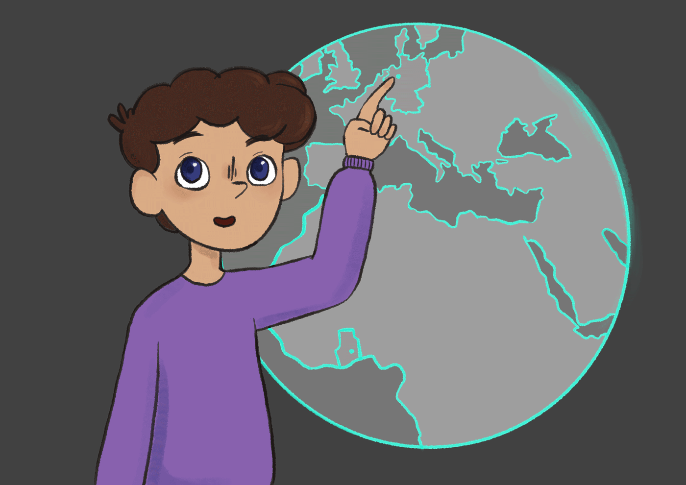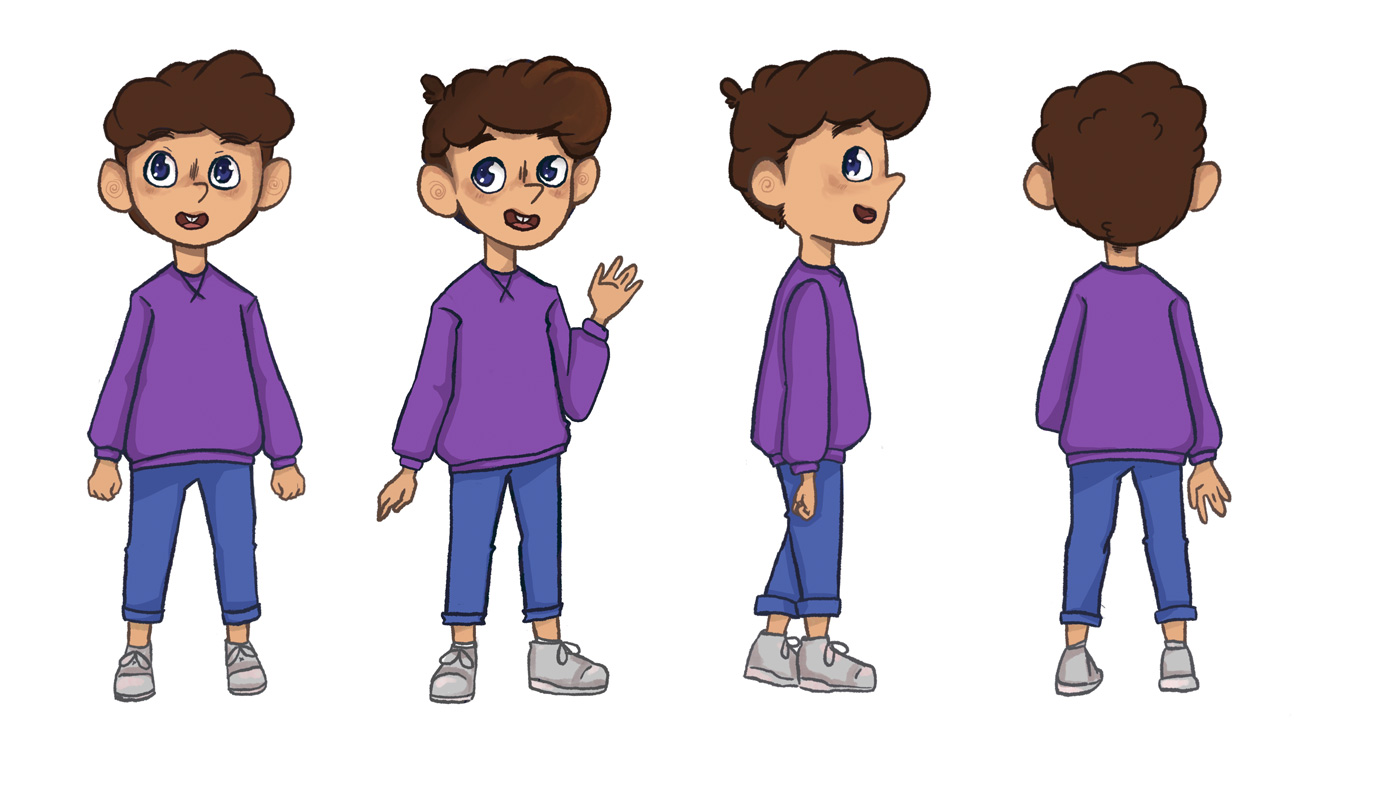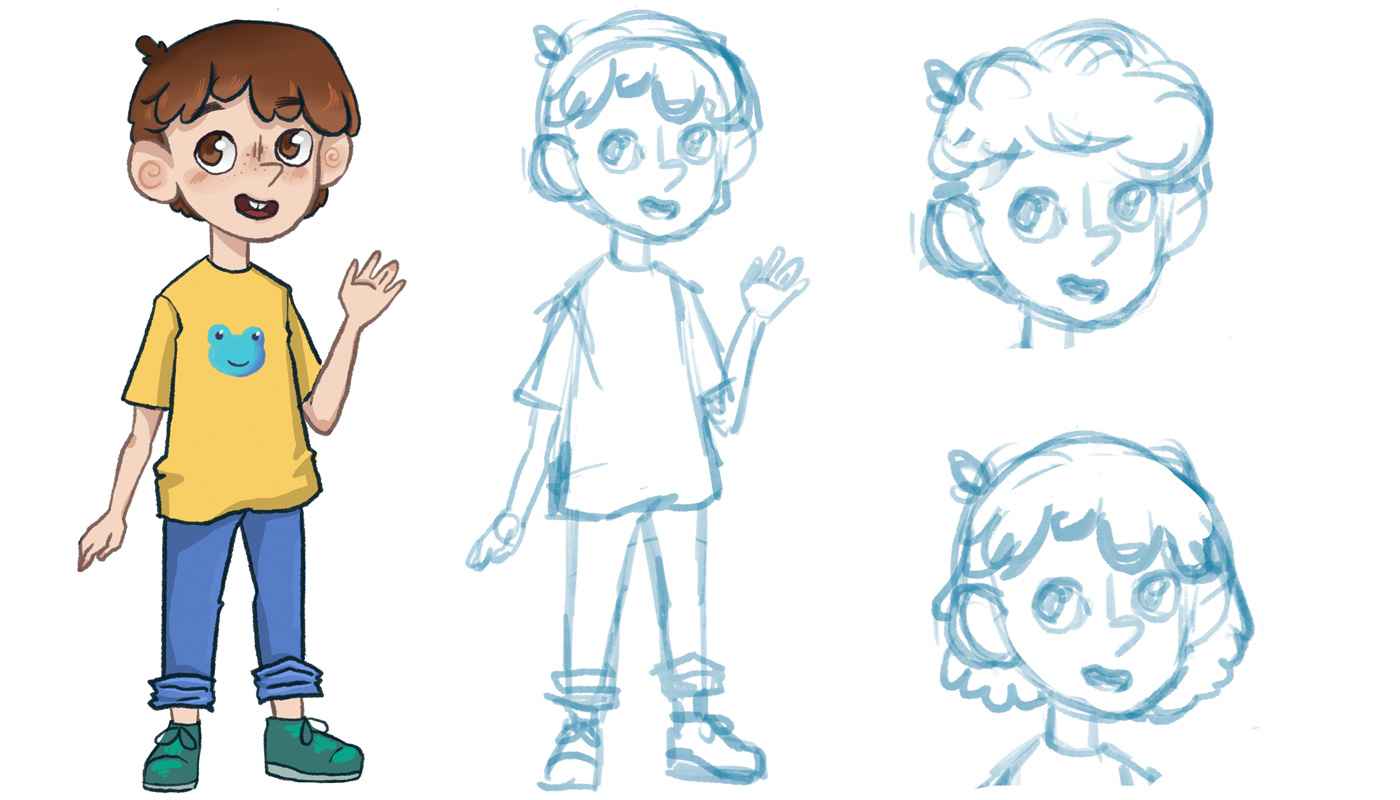 Wir hatten uns dafür entschieden, eine Kinderspur für eine Ausstellung über Elektroschrott zu entwickeln. Diese Kinderspur wird durch einen Charakter namens Alex geführt. Alex ist an jedem Teil der Ausstellung zu finden, sei es durch einen Knopf mit seinem Gesicht darauf, einen Pappaufsteller oder durch Comics, die für alle Kinder einfach zu erkennen und zugänglich ist. Das in diesem Projekt verwendete Beispiel benutzt einen Knopf, welcher einen Erklärfilm aktiviert. Im Laufe dieses Projektes haben wir uns darauf fokussiert, zwei kleine, unterstützende Kurzfilme (Storyboard) zu erstellen. In dem ersten sieht man Alex‘ Hintergrundgeschichte, wo man herausfindet, wieso das Thema Elektroschrott für ihn so wichtig ist und der zweite ist ein Beispiel für einen kurzen Erklärfilm.