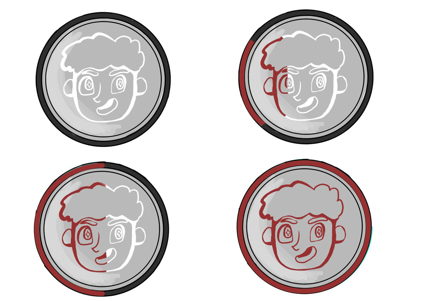 Das ausgearbeitete Design in verschiedenen Farben.