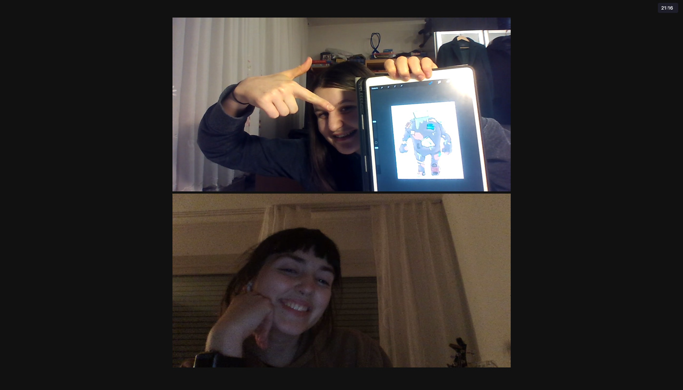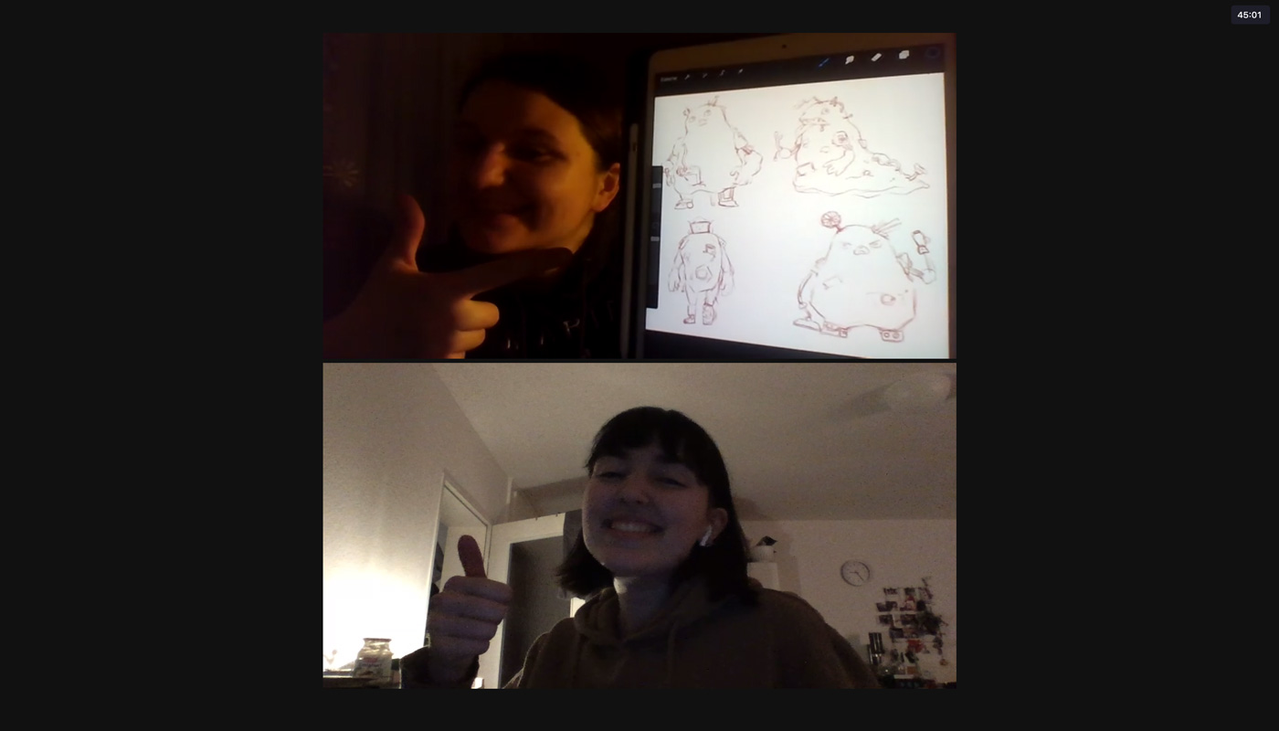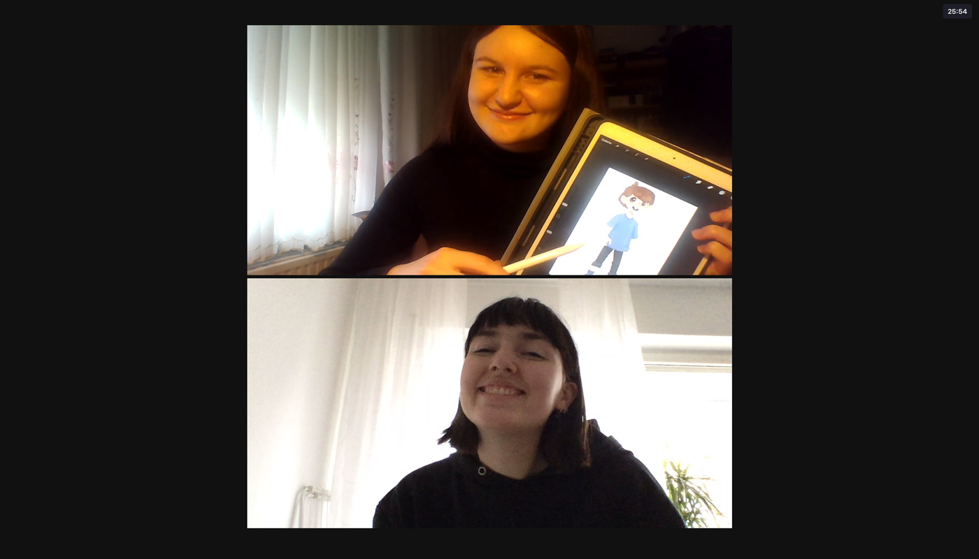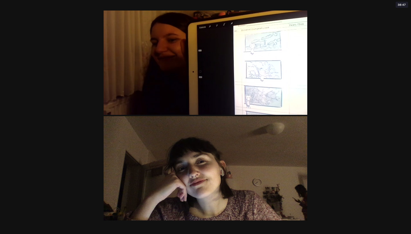 Zuerst haben wir uns über Zoom getroffen, um uns Ideen für einen Kurzfilm einfallen zu lassen. In diesem Treffen haben wir ebenso ausgemacht, dass wir uns jede Woche mindestens zwei Mal, mittwochs und samstags, treffen, um Aufgaben zu verteilen und Fortschritte zu besprechen. Zuerst entwickelten wir die Idee, einen Film über einen kleinen Jungen zu machen, der sich eine Ausstellung über Elektroschrott anschaut und sich durch dort ausgestellte Bilder ausdachte, ein Monster aus Müll zu sehen, dass Unheil verbreitete. Aus dieser Idee einfach einen Kurzfilm zu machen, entwickelte sich schnell weiter. Wir überlegten, einen Kurzfilm, der für Kinder gedacht bzw. an Kinder gerichtet ist zu machen. Die nächste Überlegung war es dann, die gesamte Ausstellung auf irgendeine Weise für Kinder zugänglicher zu machen. Daher hatten wir die Idee, den Kind-Protagonisten aus unserem Film zu nehmen und ihm zum Herz der Kinderspur zu machen. Wir gaben ihm den Namen Alex, ein neutrales, jedoch einprägsames Aussehen und eine Hintergrundgeschichte, die für Kinder inspirierend sein kann, jedoch auch erklärt, woher er so viel über Elektroschrott weiß. Das Konzept des Kurzfilmes nahmen wir und wandelten es in seine „Origin-Story“ um. Dann erarbeiteten wir ein zweites Storyboard zu einem Erklär-Film zur Route des Elektroschrotts. All dies besprachen wir in regelmäßigen Zoom-Calls, und zwischen denen haben wir uns täglich neue Dinge, die wir erarbeitet haben, auf WhatsApp geschickt.