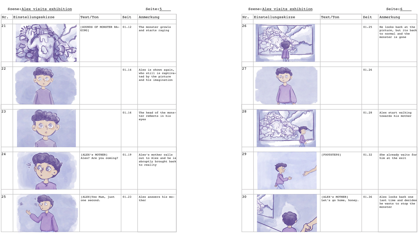 Der erste Entwurf für das Storyboard zum Kurzfilm über Alex.