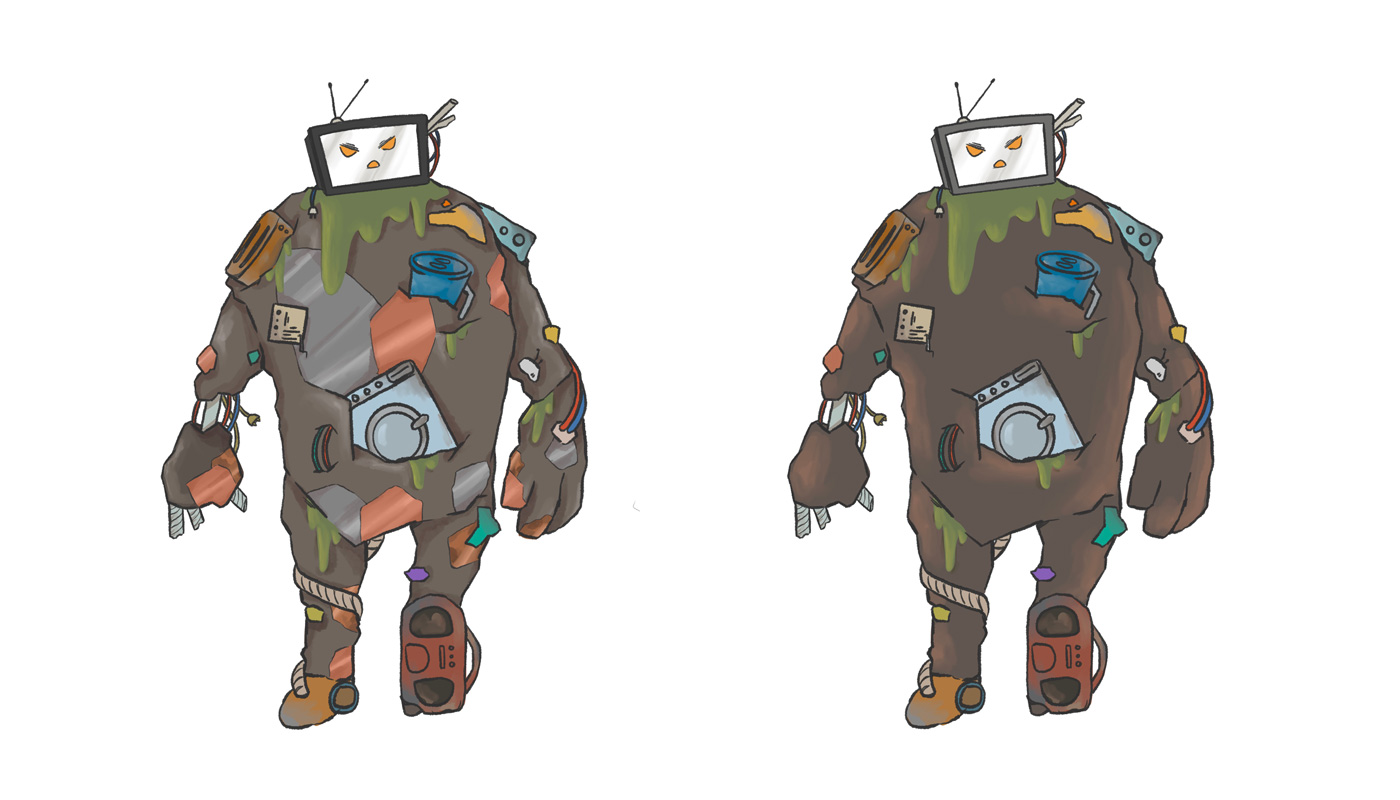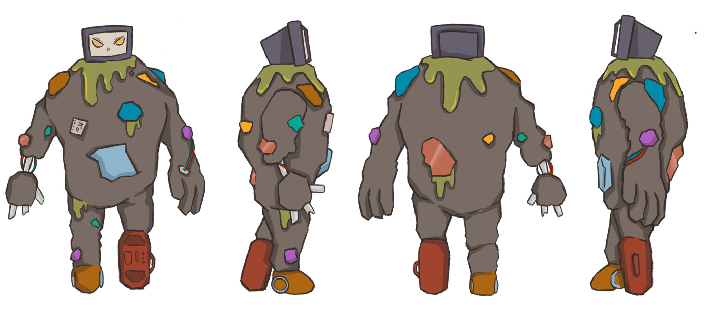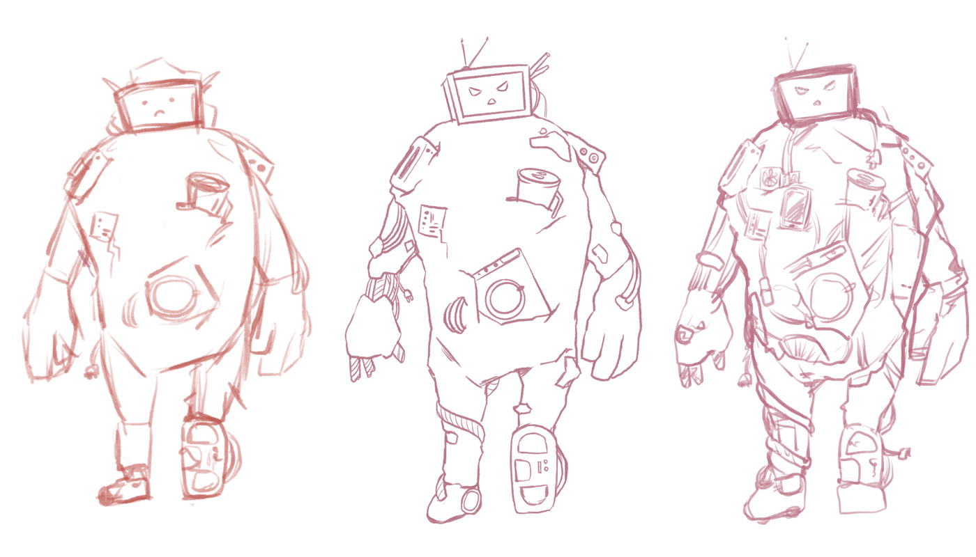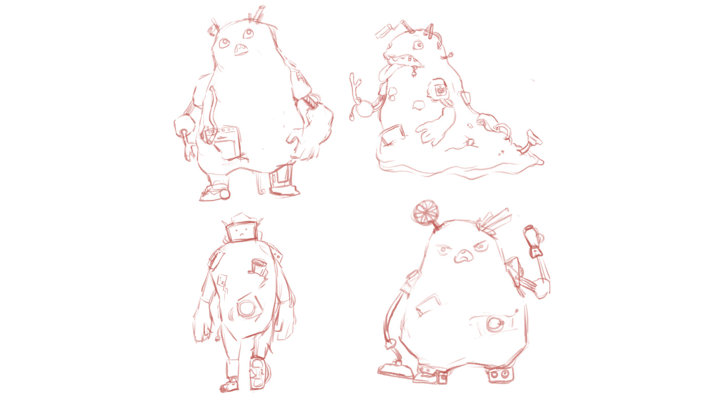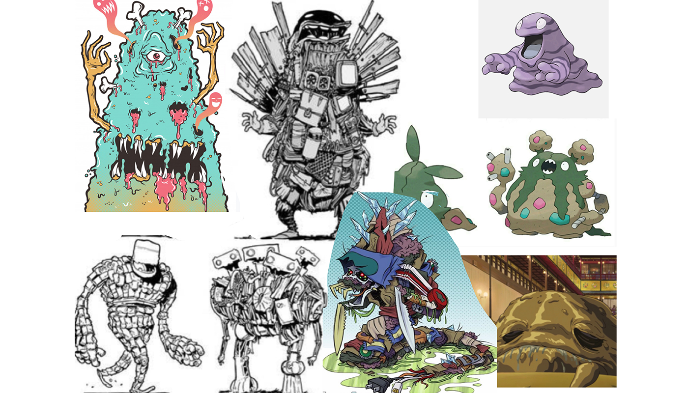 Sketches zum Müllmonster, die die Detailierung darstellen sollen.